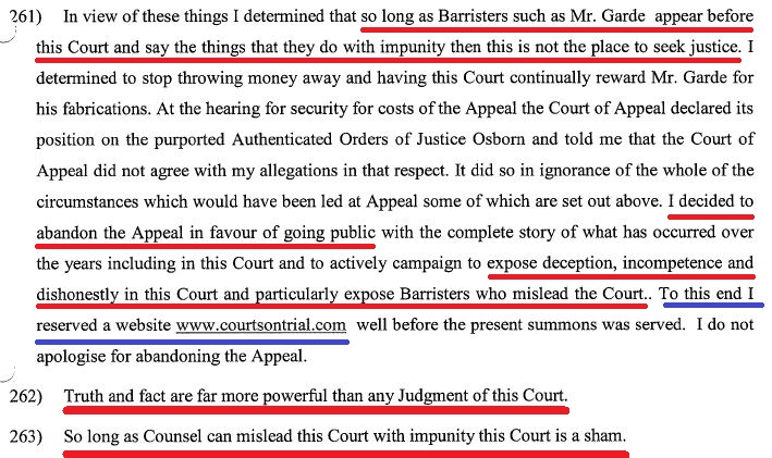 Fixed with substantive knowledge of the things set out in the above two videos and the conduct of Osborn and a great deal of further evidence of similar conduct, during various hearings in the Court of Appeal;