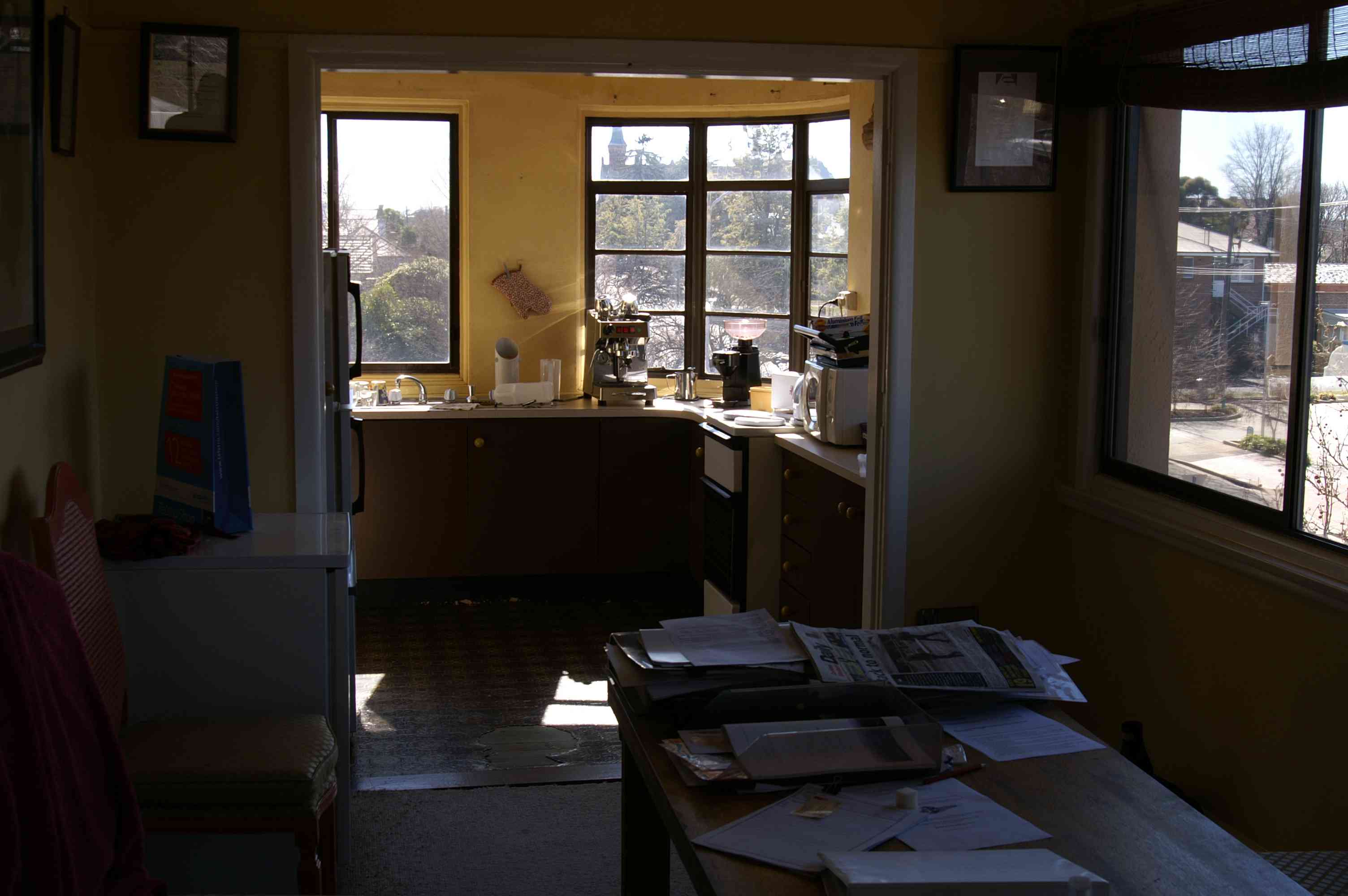 - My front room looking north through the kitchen and showing a trestle table.