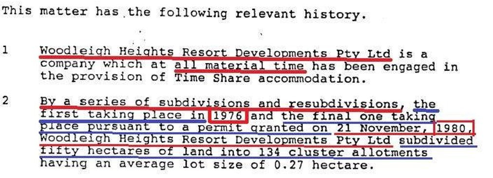 The gravamen of the new 2005 proceeding before Osborn was defined in my written submissions to Osborn, the 2005 proceeding related to two subdivisions, Tylden Rd and Woodleigh Heights, this present discussion only relates to the Woodleigh Heights subdivision. The gravamen in respect to both Tylden Rd and Woodleigh Heights was identical from a legislative viewpoint but different as to the factual basis.