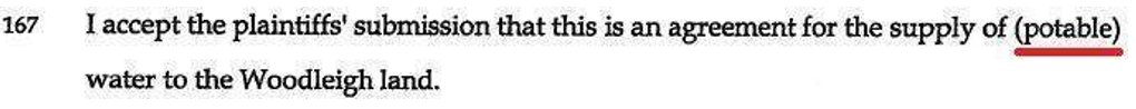 Then at his paragraph 167 Osborn dishonestly said that I had submitted that the 1982 Water Supply Agreement was for the supply of potable water; His paragraph 167 said;