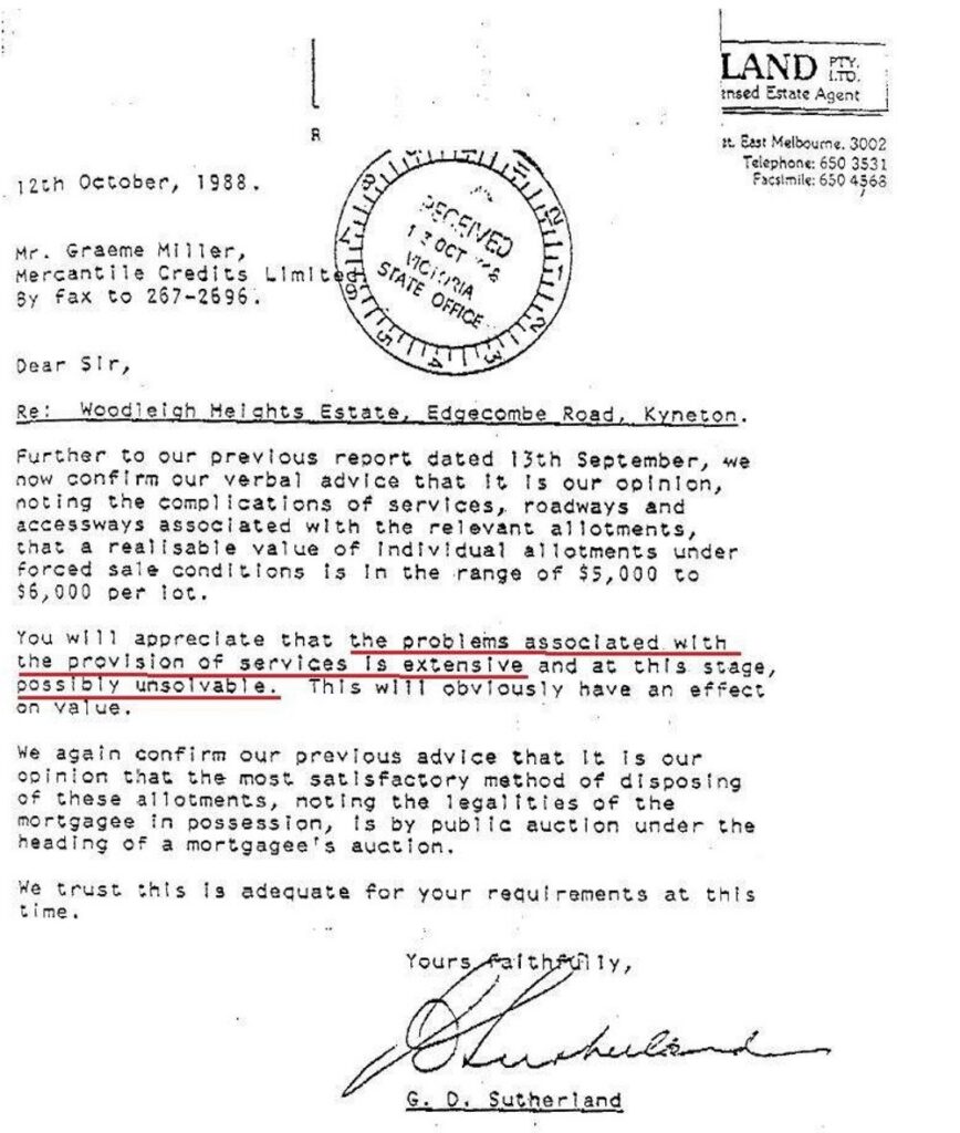 • At all material times Mercantile Credits Limited (“MCL”) was mortgagee of my Woodleigh Heights land and MCL was intimately aware of the fraud of the Council and Water Authority and WHRD.