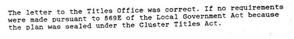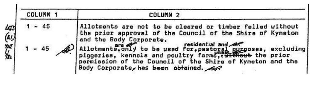 This 1978 error of omission was well known to Osborn and was rectified in 1979 when the Council sealed the plans of subdivision and the Registrar of Titles register the cluster subdivision and issued titles. In the Ninth Schedule which was registered by the Registrar of Titles on 9th August 1979 the word “are” was interlineated between the words “Allotments” and “only” and the words “residential and” were interlineated between the words “for” and “pastoral”. The following is a copy of the relevant part of that Ninth Schedule.