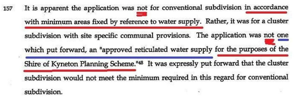 The fact of course was that this notion of potable versus non-potable was entirely and utterly irrelevant in the true scheme of things. This theatrical declaration and revelation was only necessary to Osborn’s scheme to seduce a reader of his reasons into believing that the private non-potable supply could NOT be the supply integral to his second invented component of the Planning Permit.