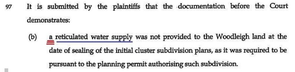 Then at his paragraph 97 and 97(b) Osborn obtusely represented that I described the gravamen as being related to “A” (generic) reticulated water supply was not provided at the date of sealing the plans as it was required to be.