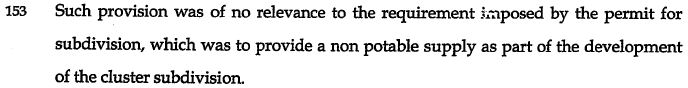 Here Osborn says that the planning permit imposed a requirement “to provide a non potable supply” as part of the development of the cluster subdivision. As I will demonstrate below the fraudster, Osborn, could not keep track of his fraudulent misrepresentation. On the one hand he states that the developer did not have to comply with condition 8 of the planning permit before the plans were sealed by the Council yet here he asserts that the “non potable” supply was a “requirement imposed by the permit for subdivision.