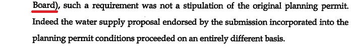 The fact is that planning planning scheme was exactly as said by me and the private reticulated water supply was a condition of the planning permit.
