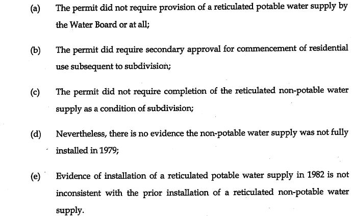 Delany, Garde and Co were thoroughly aware of the distinction between the 1979 private reticulated water supply and the unlawful 1982 water supply and they were thoroughly aware that the reason why the 1979 supply was not present was because the 1979 reticulation system had not been laid.