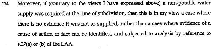 Osborn’s paragraph 169 is very carefully and cleverly deceptive, he says “the fact of CONSTRUCTION of a potable water supply”.  My letter contains no evidence of “construction” at all within the Woodleigh Heights subdivision..  The letter clearly sets out that a water main was laid along Edgcombe Road and makes no mention at all of construction of the reticulation system within Woodleigh Heights.