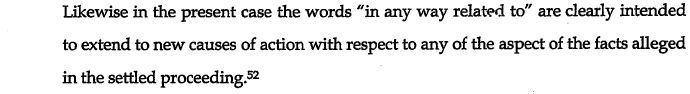 As previously set out by me I say that the subject matter of the previous proceedings existed only in the fraud of the Defendants and therefore no subject matter exists except for that fraud. The Terms of Settlement can not release the Defendants from that fraud and the Defendants cannot claim release from that which never existed except in their fraud.