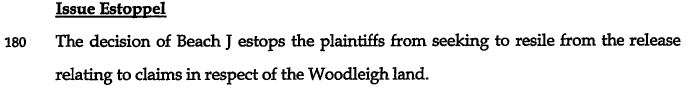 In reply to Delany and Co’s submissions in respect to Woodleigh Heights I explained the distinction between the two reticulated water supplies, the unlawful nature of the 1982 supply and the stages of concealment of the fact of and facts of the 1979 supply and reticulation system including that the reticulation plan had not been discovered during the 1995 proceeding and was concealed until after the deed of settlement was signed in the 1995 proceeding.