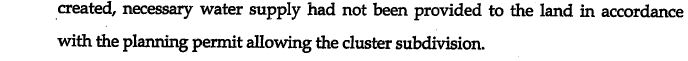 The 2005 proceeding alleged that the reticulated water supply defined in the submission referred to in clause 8 of planning permit 2191 had not been completed as required by law and that the Council had sealed the plans of cluster subdivision in breach of s569B(7)(a)(iii) and the allotments created were unusable and there was no lawful means of making them usable.
