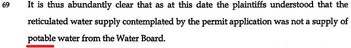 Believe it or not; a reticulation plan is just that; the plan manifestly disclosed the laying of a reticulation system of pipes. It manifestly does not describe anything at all in respect of “a reticulated potable water supply to the cluster subdivision.”