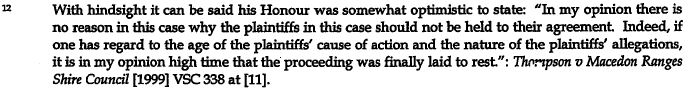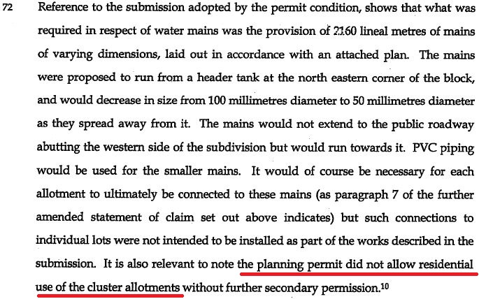 Yes, thank you.  Now with the Woodleigh Heights land, it arises because there’s a cluster of subdivision or subdivision planning permit, which required a reticulated water supply to be installed .. .. … …   It’s going back to the same issue that at a root and branch attack upon the subdivision as sealed.  Same point but with a different statutory content.  That’s the cause of action