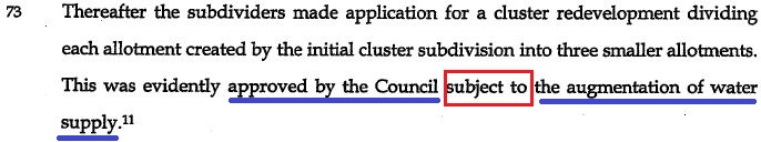 Here Osborn fraudulently asserts that I submitted that an approved reticulated water supply “from the water board” was a precondition to the grant of Building permits.