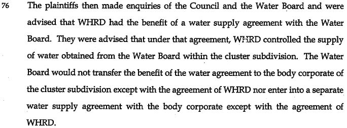 The water was not supplied “to this subdivision in 1982″; it was supplied to the private company Woodleigh Heights Resort Devlopments P/L”